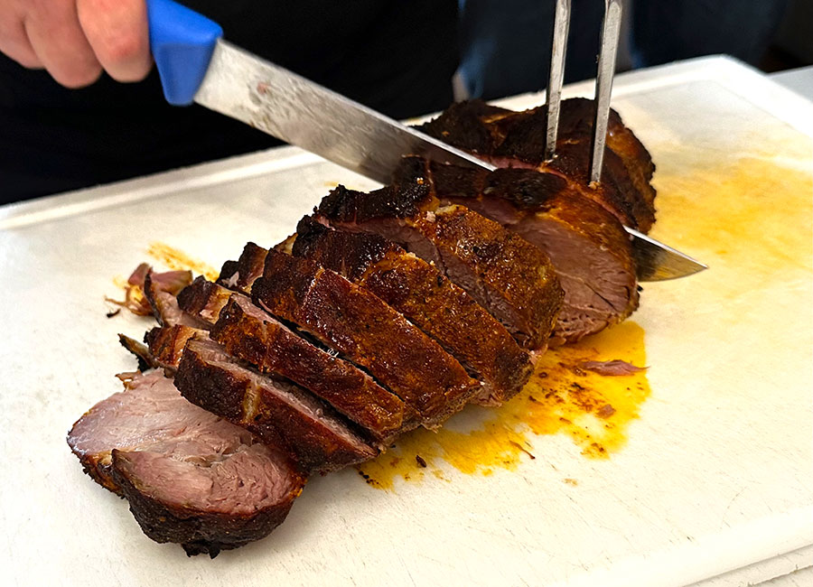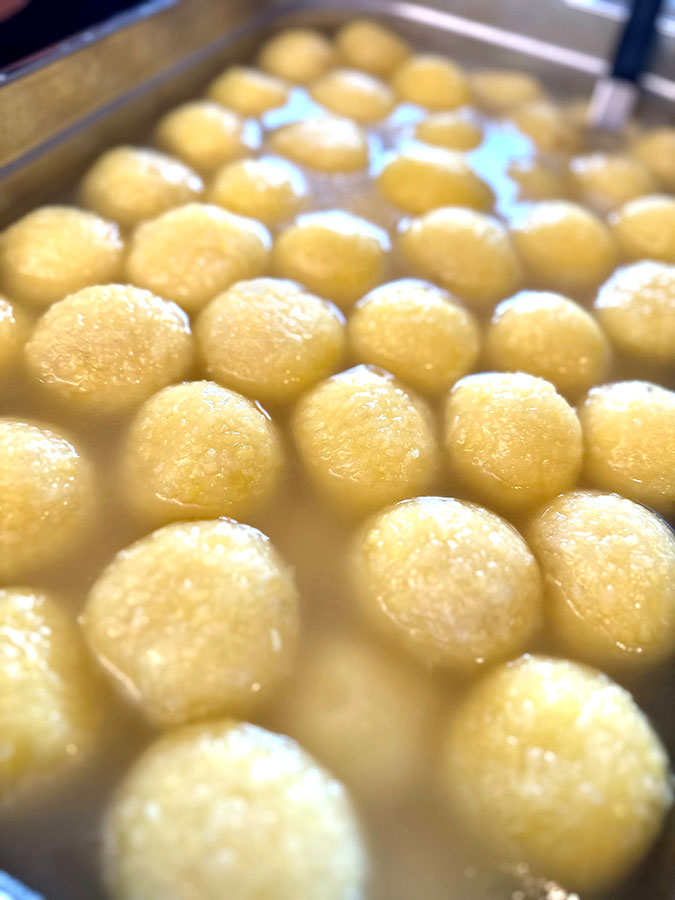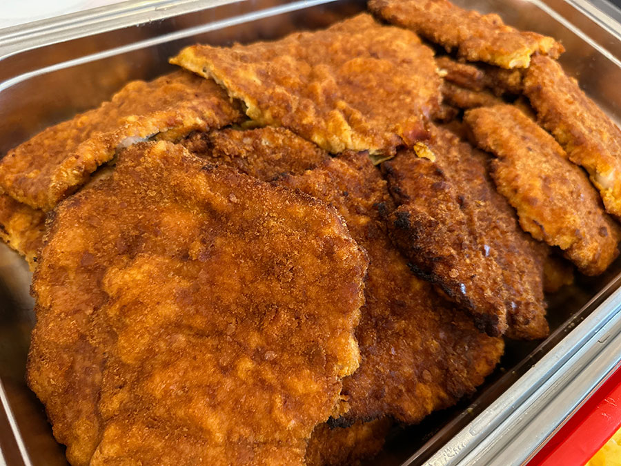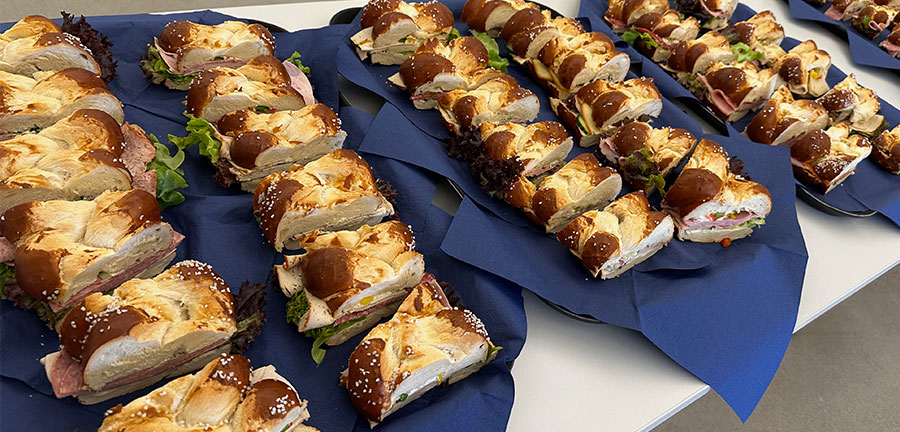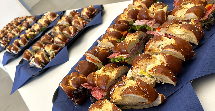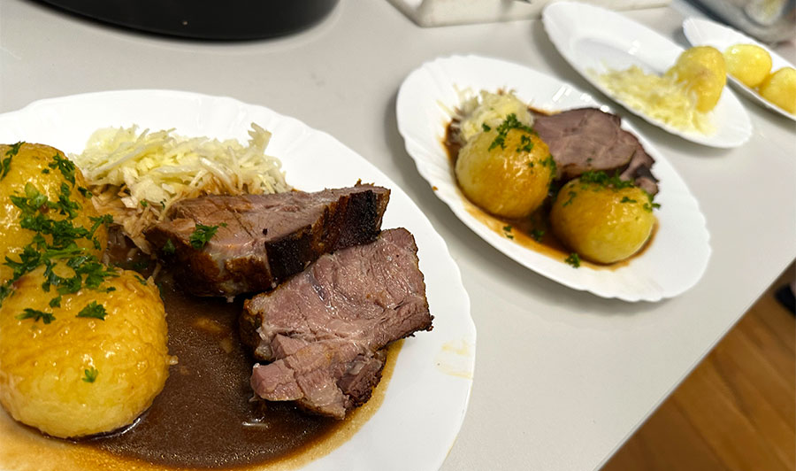 Es gabe belegte Rießen-Ringe und am Abend Schweinebraten mit Kartoffelknödel, Krautsalat. Schnitzel mit Kartoffelsalat und Kässpatzn.