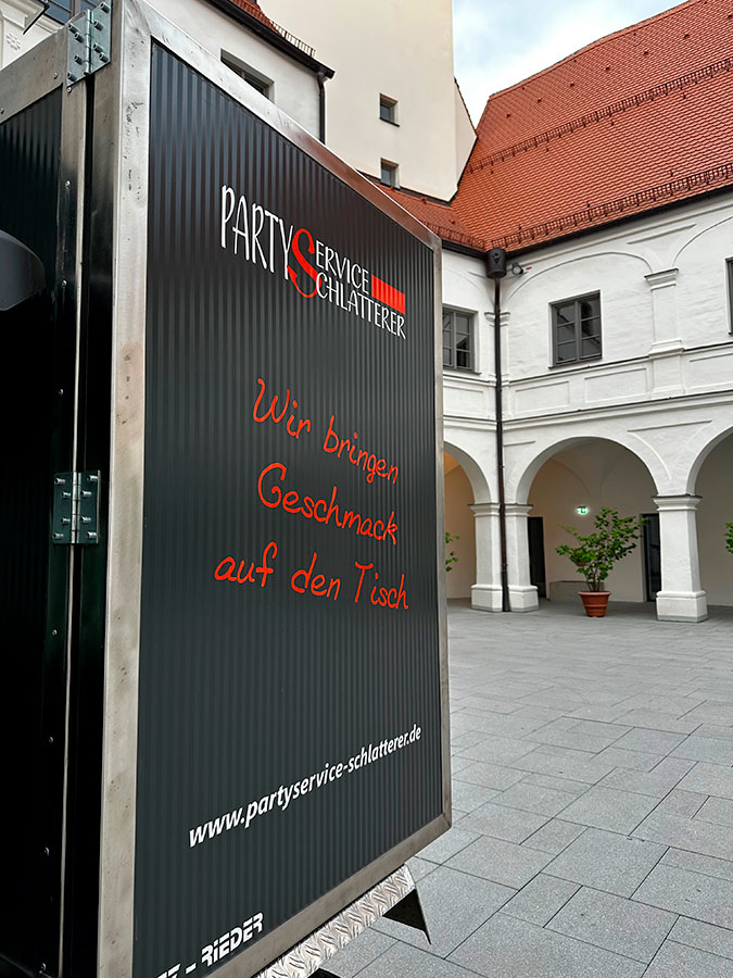 Für 400 Gäste im Schlosshof und anschließend 200 Gäste im großen Saal des Wittelsbacher Schlosses.